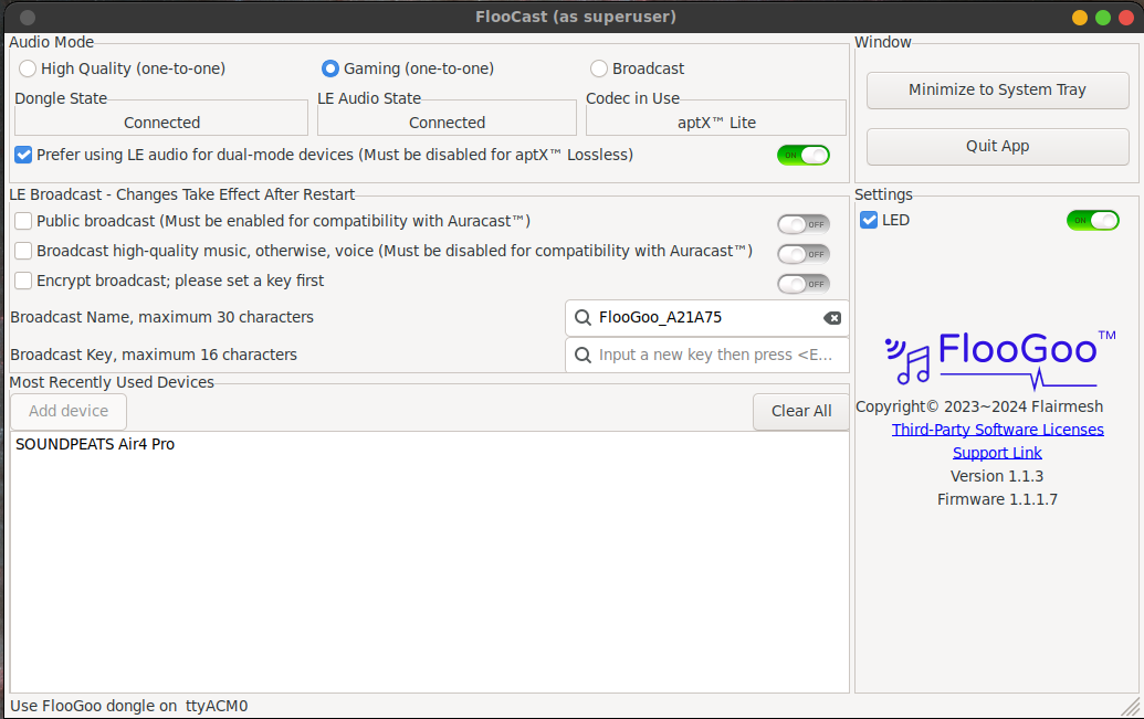 Re: Bluetooth audio aptX on Windows and Linux and FMA120 with SoundPEATS Air4 Pro